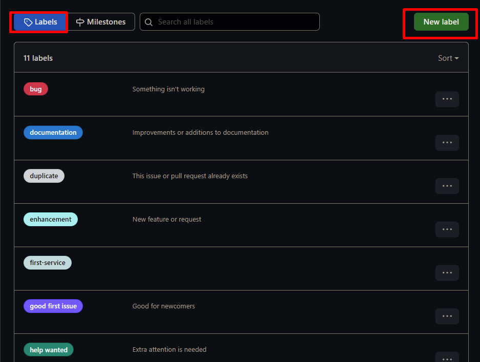 일단, 마일스톤 외에 라벨을 만들어 준다. 좌측 상단에 라벨 탭으로 이동하고 새로운 라벨을 생성해 준다.