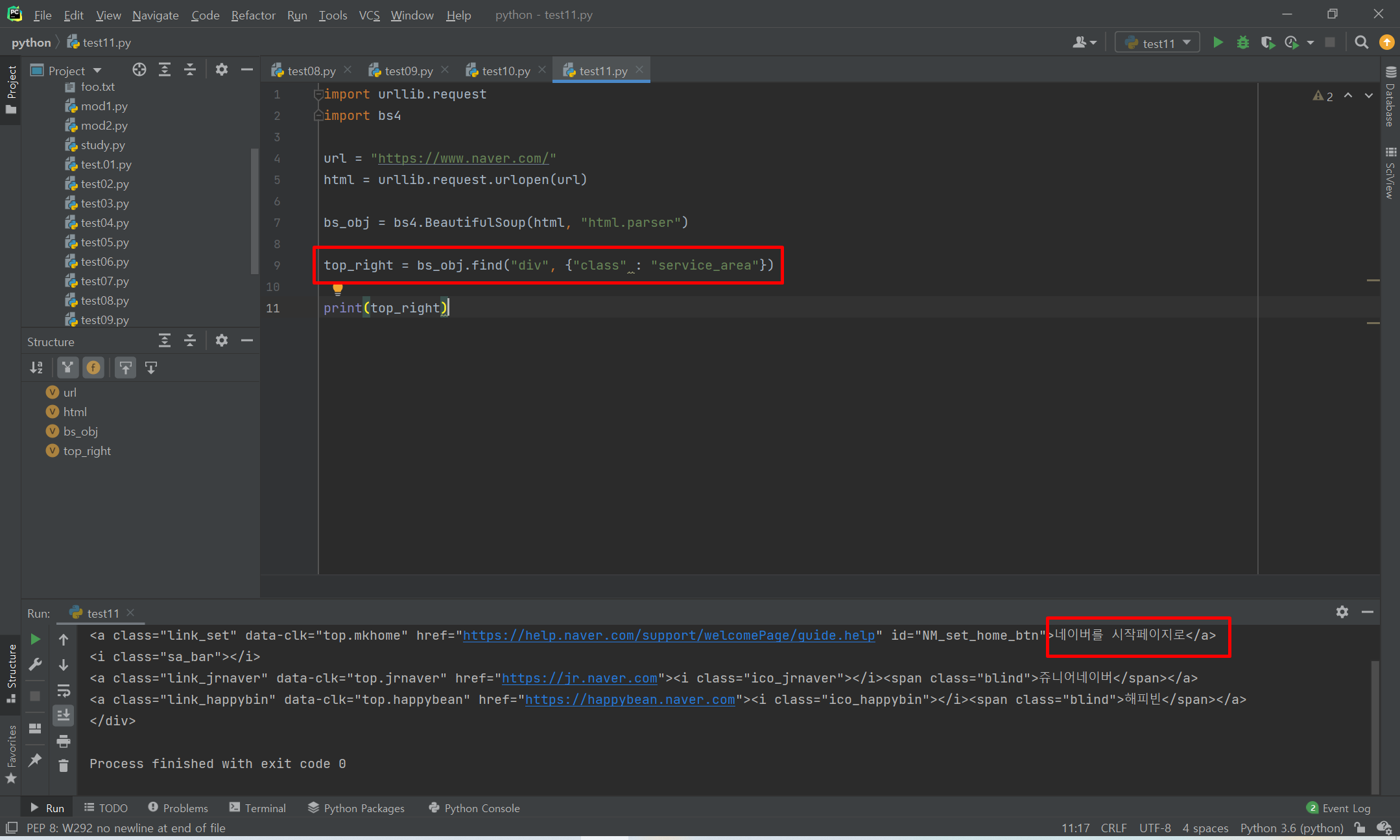 urlib.reqeuest의 urlopen 함수로 네이버 첫 페이지를 불러옵니다.