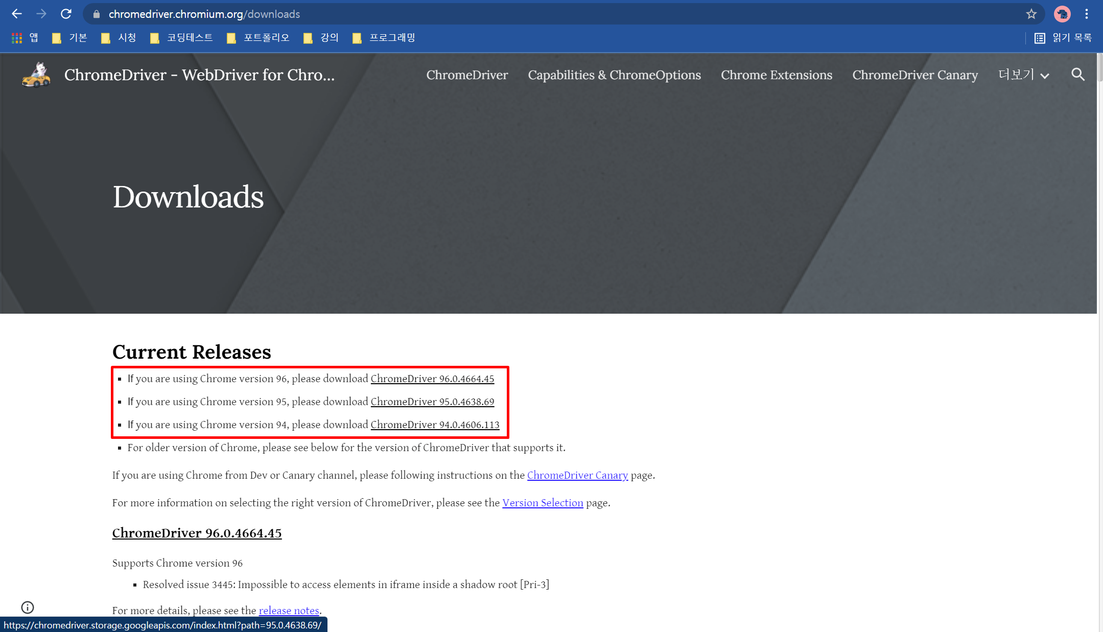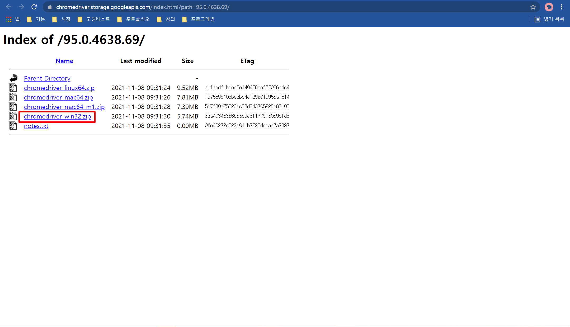 본인의 크롬 버전에 맞게 다운로드해 줍니다.