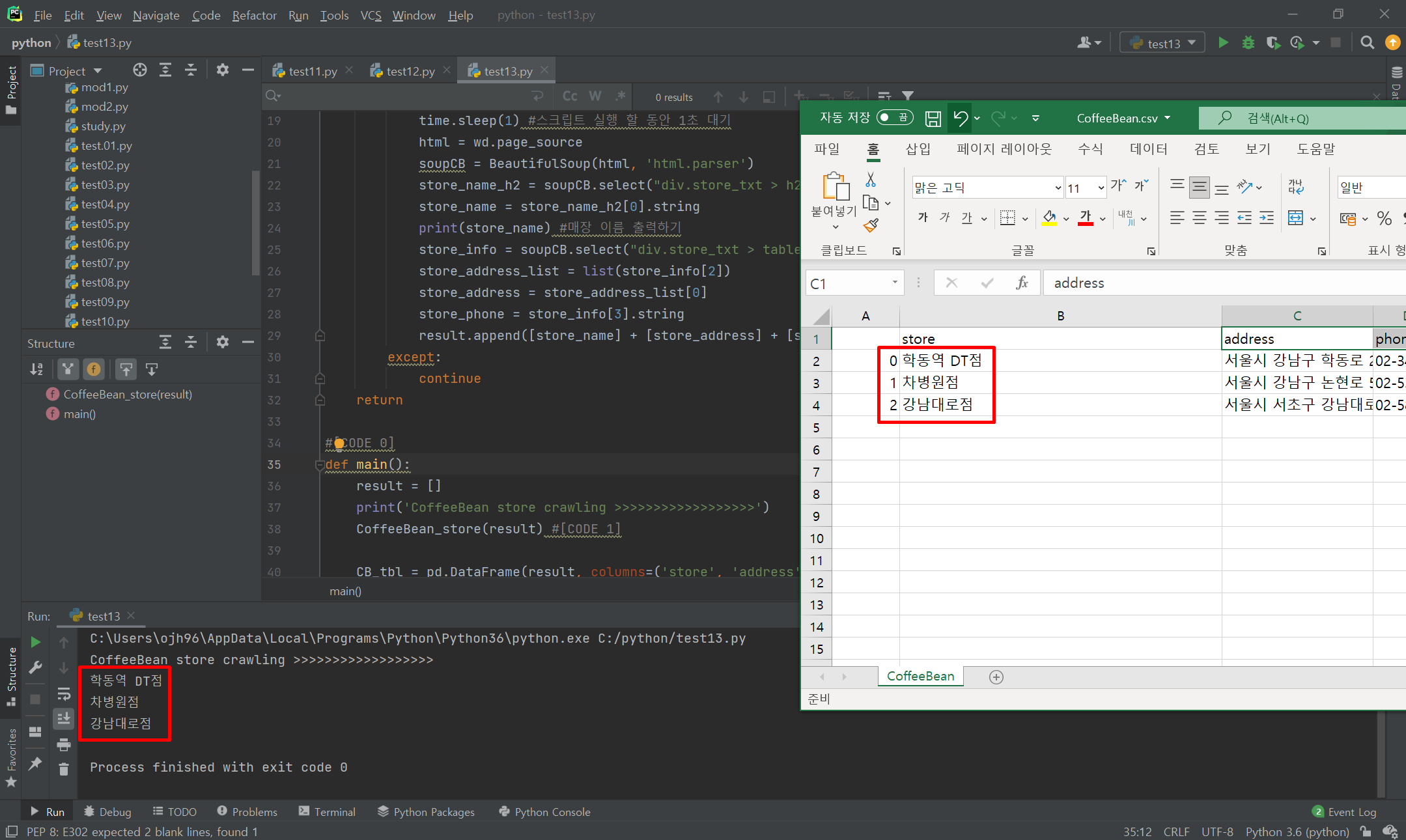 CB_tbl.to_csv('./CoffeeBean.csv', encoding='cp949', mode='w', index=True)