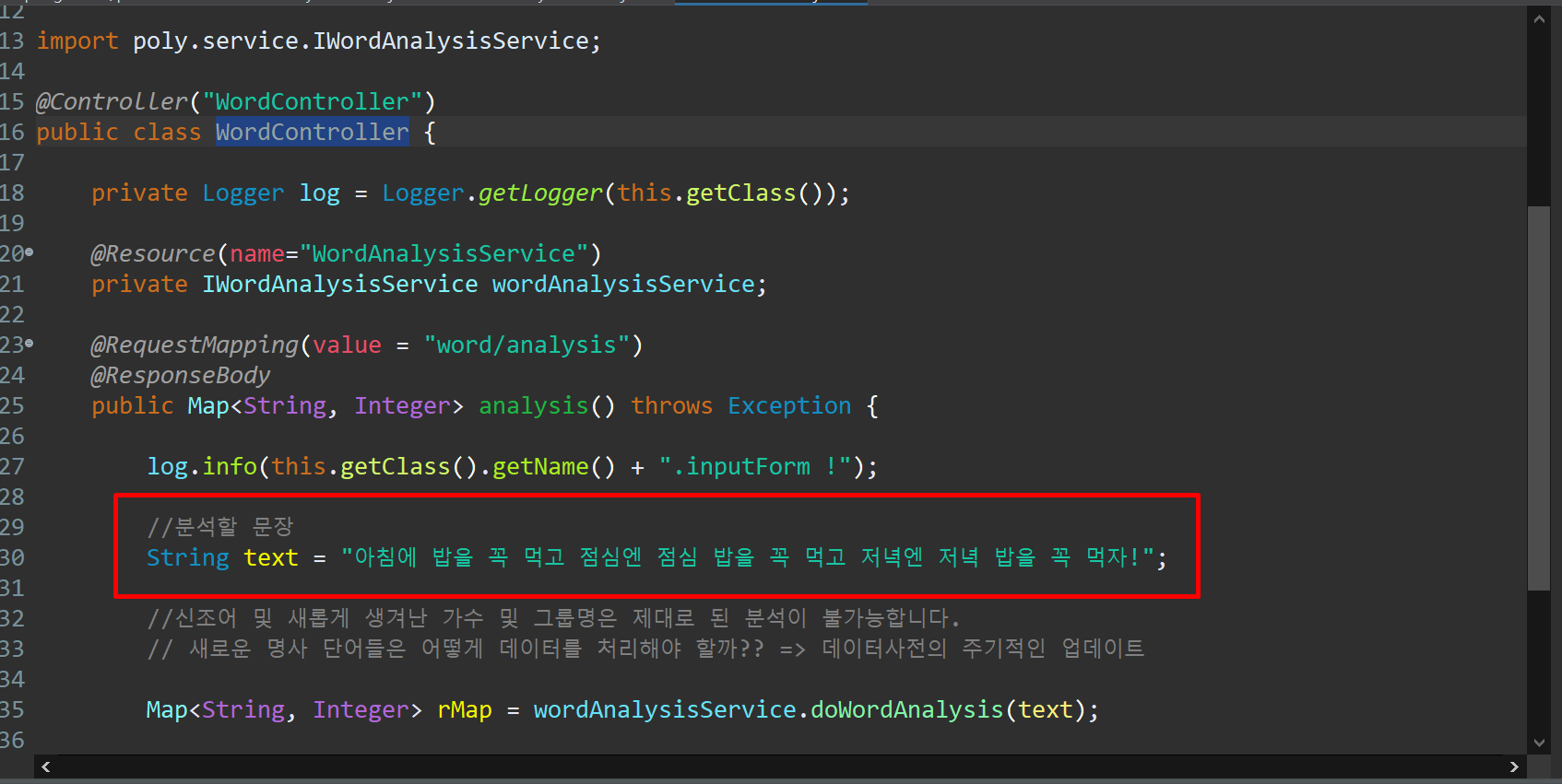 Map<String, Integer> rMap = wordAnalysisService.doWordAnalysis(text);