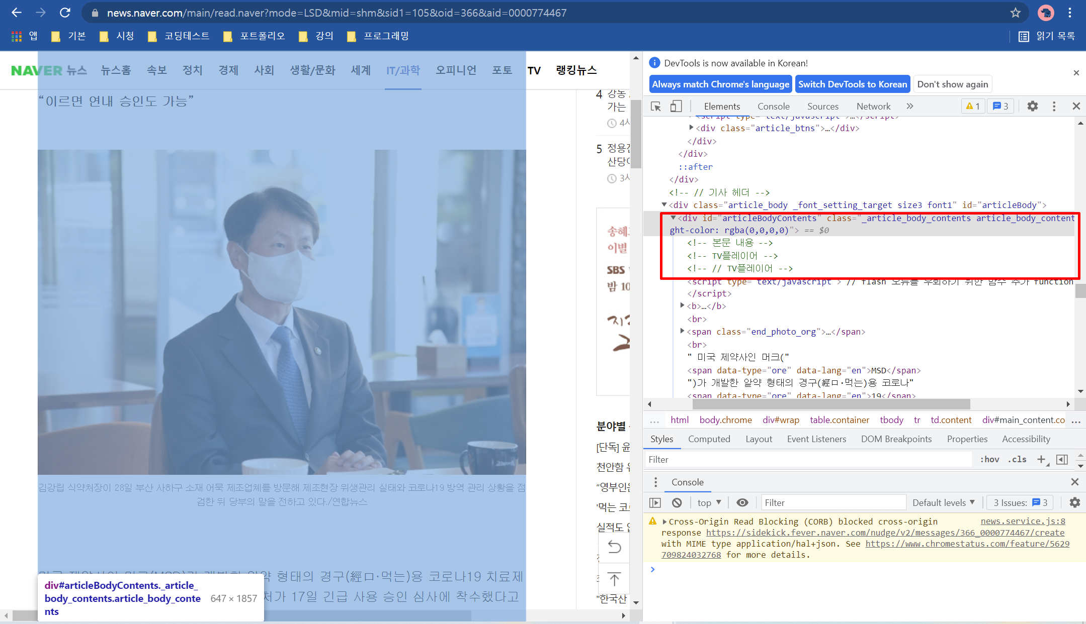 //네이버 뉴스 본문 내용에 대한 div 소스를 가져옵니다.