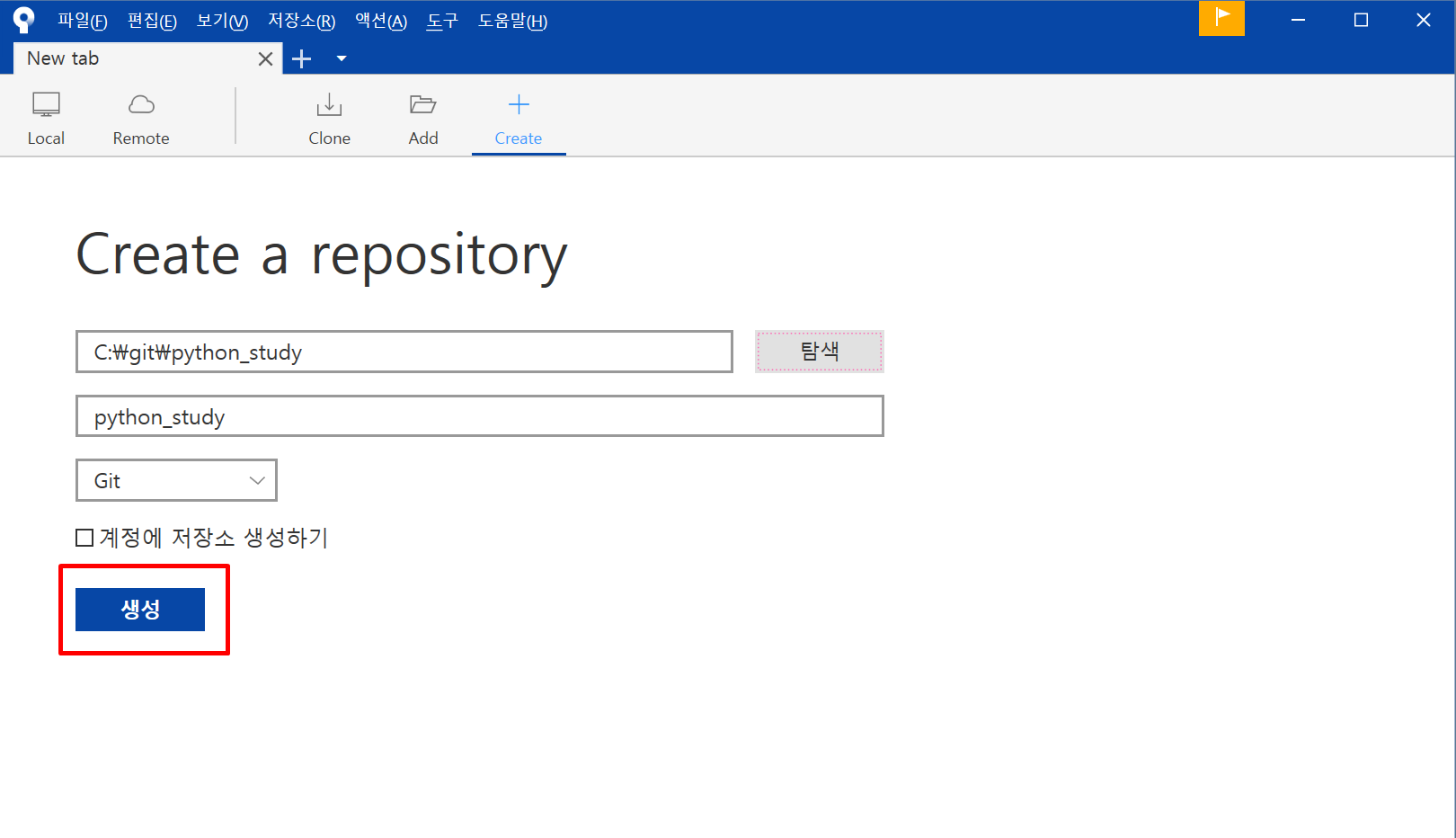 생성 버튼을 눌러줍니다.