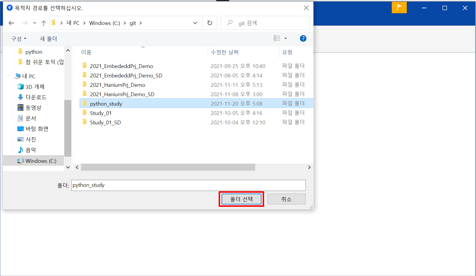 사용할 파일을 지정하고 폴더 선택을 눌러줍니다.
