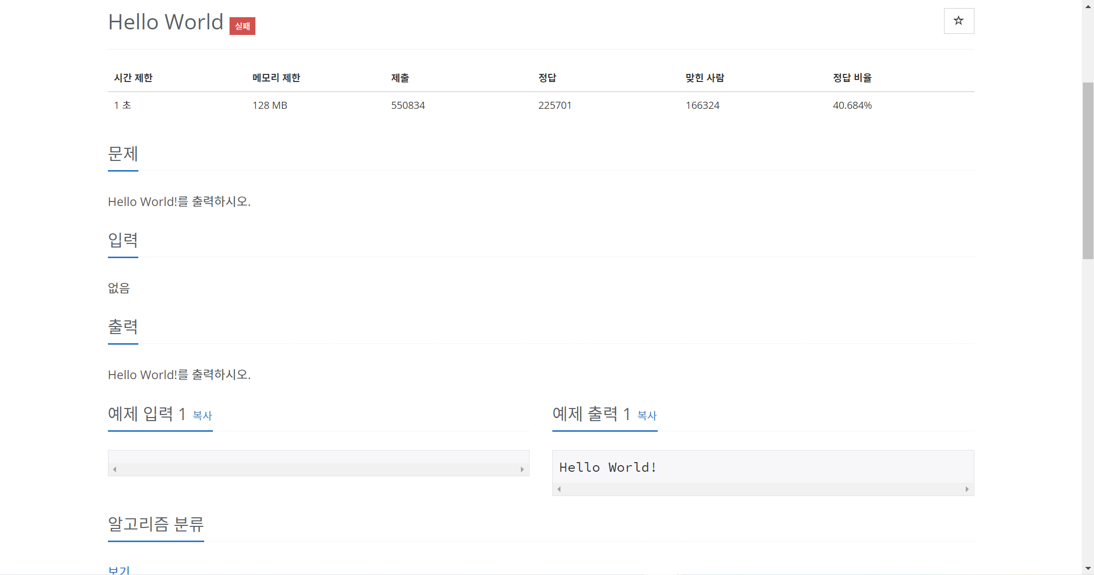 문제는 Hello World인데 출력은 Hello World! 입니다.