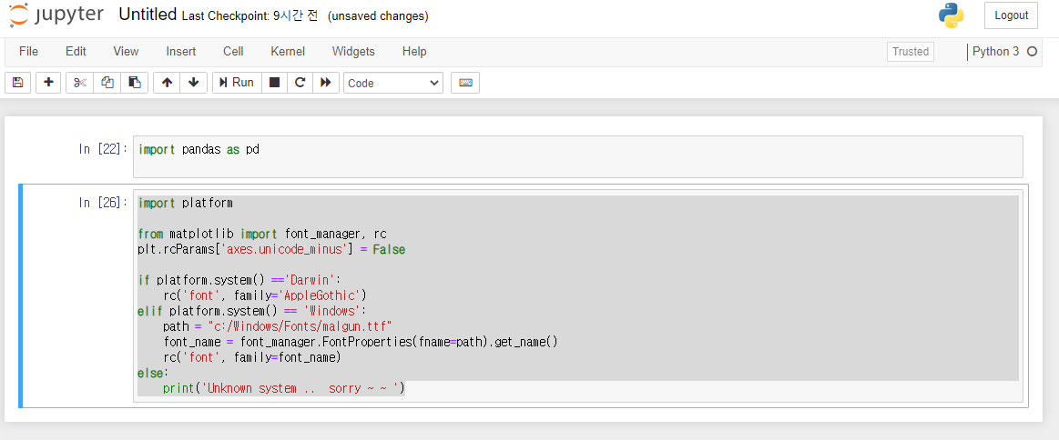 때문에 matplotlib의 폰트를 변경할 필요가 있습니다.