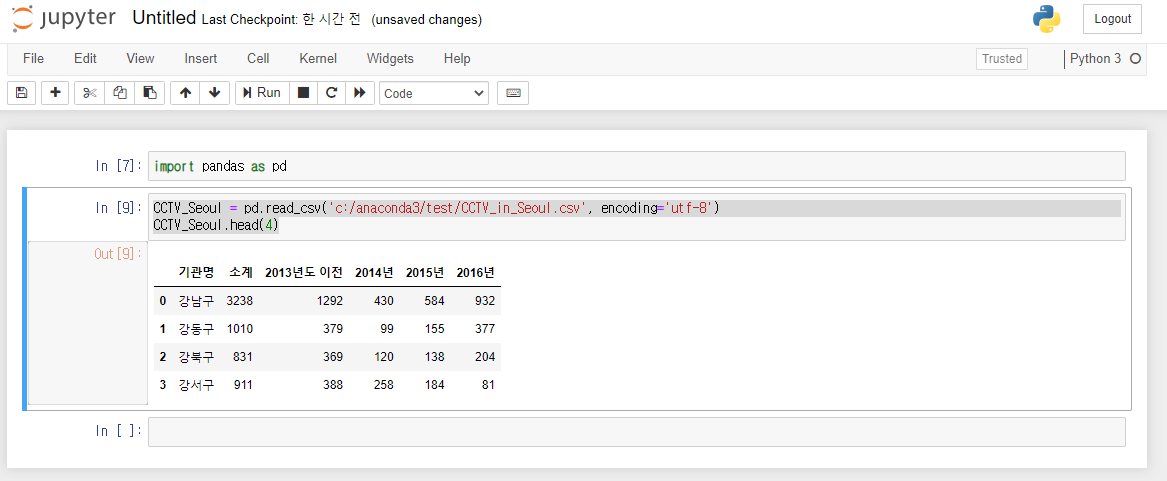 CCTV_Seoul = pd.read_csv('c:/anaconda3/test/CCTV_in_Seoul.csv', encoding='utf-8')