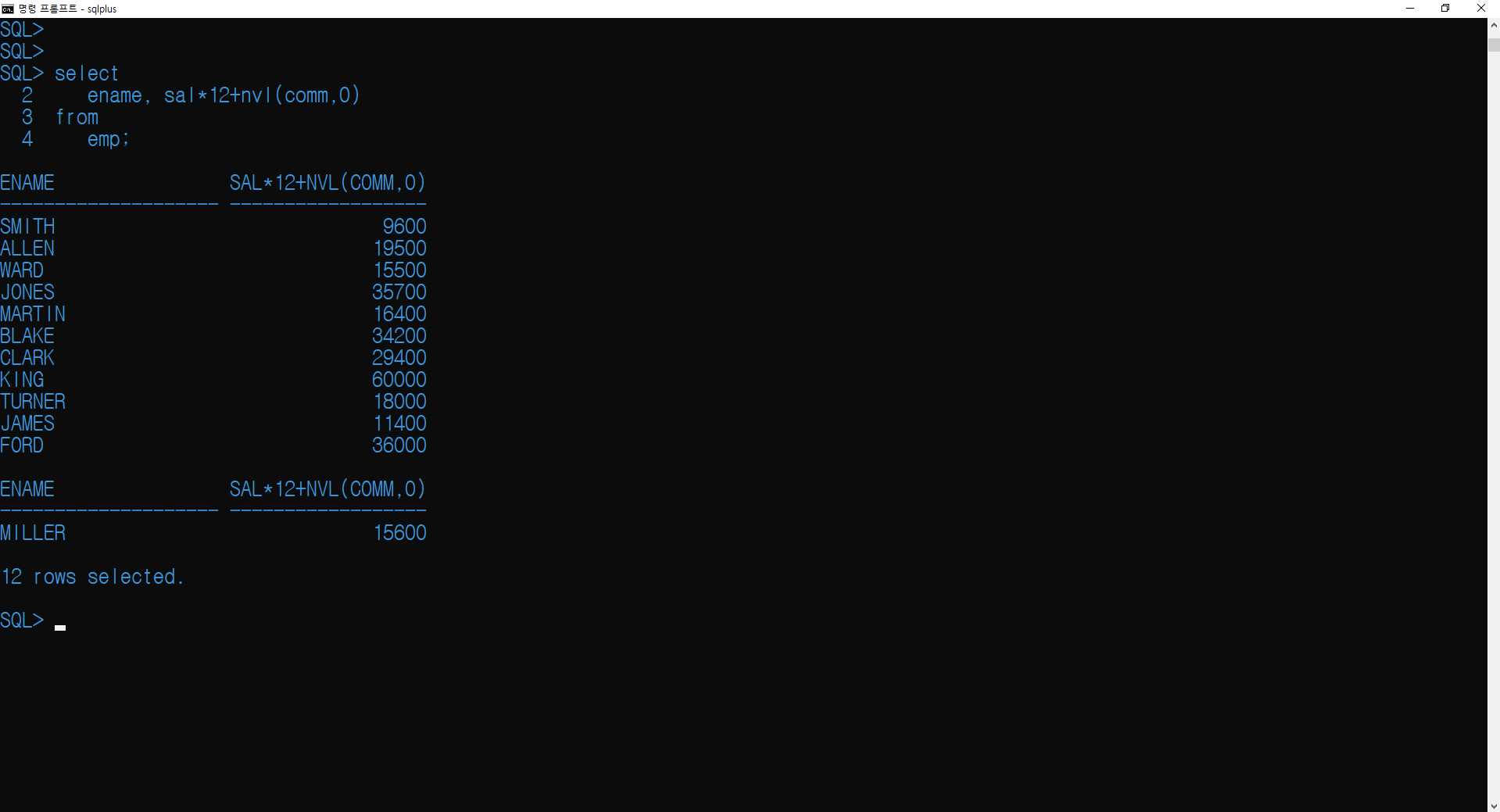 편집 명령을 실행해 보기 위해서 연봉을 계산하는 쿼리를 작성했습니다.