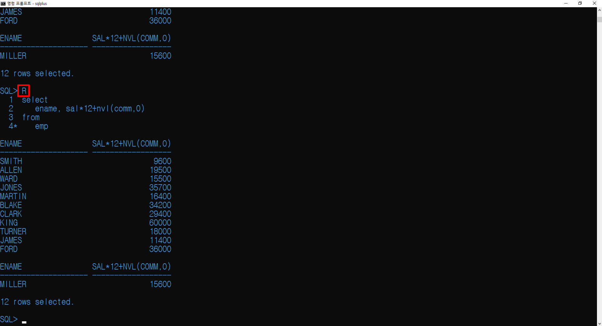 | LIST (L) | 버퍼에 저장된 모든 SQL문, 검색한 라인의 SQL문을 나타냅니다. |