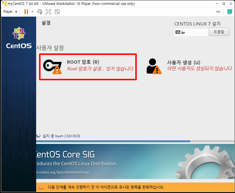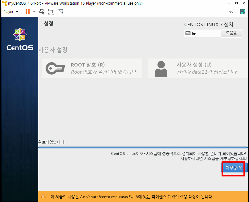 CentOS 설치 완료 후 동작 확인