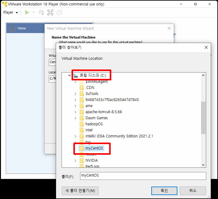 아까 만든 myCentOS 폴더를 불러옵니다.