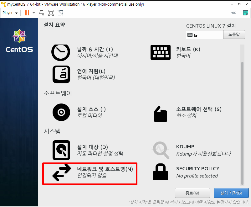 소프트웨어 선택은 최소 설치 확인해 줍니다.
