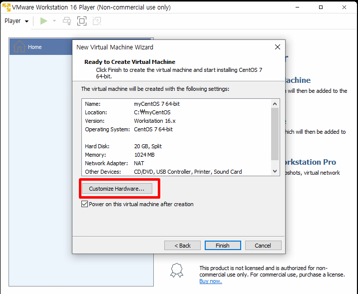 커스터마이징 하드웨어 클릭해 줍니다.