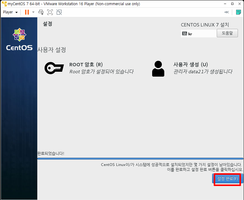 설정 완료를 눌러줍니다.