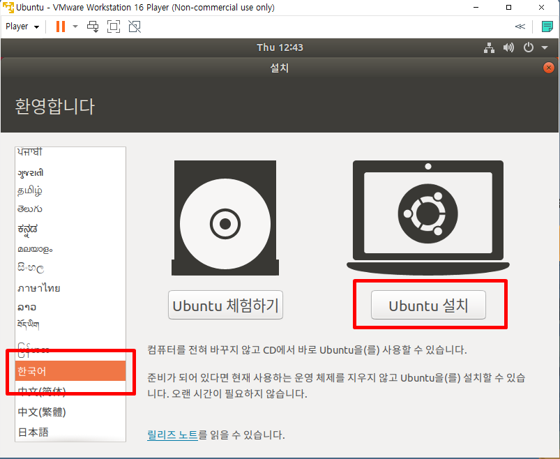 Ubuntu 설치를 눌러줍니다.
