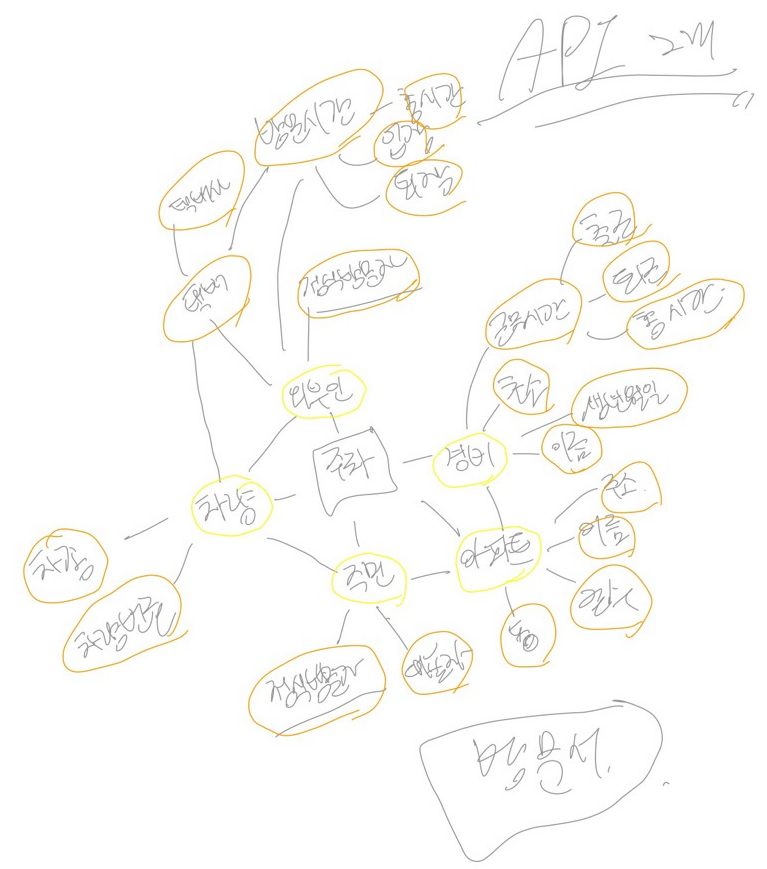 테이블 구조를 생각하고 PK, FK를 생각하다 보니 마인드 맵으로 나타낼 수 있을 것 같아서 아이패드 메모를 통해 어떤 항목이 서로 이어지고 어떤 테이블에서 어떤 항목을 공유할 수 있는지 마인드 맵을 그리면서 점점 구체화 하고 있습니다.
