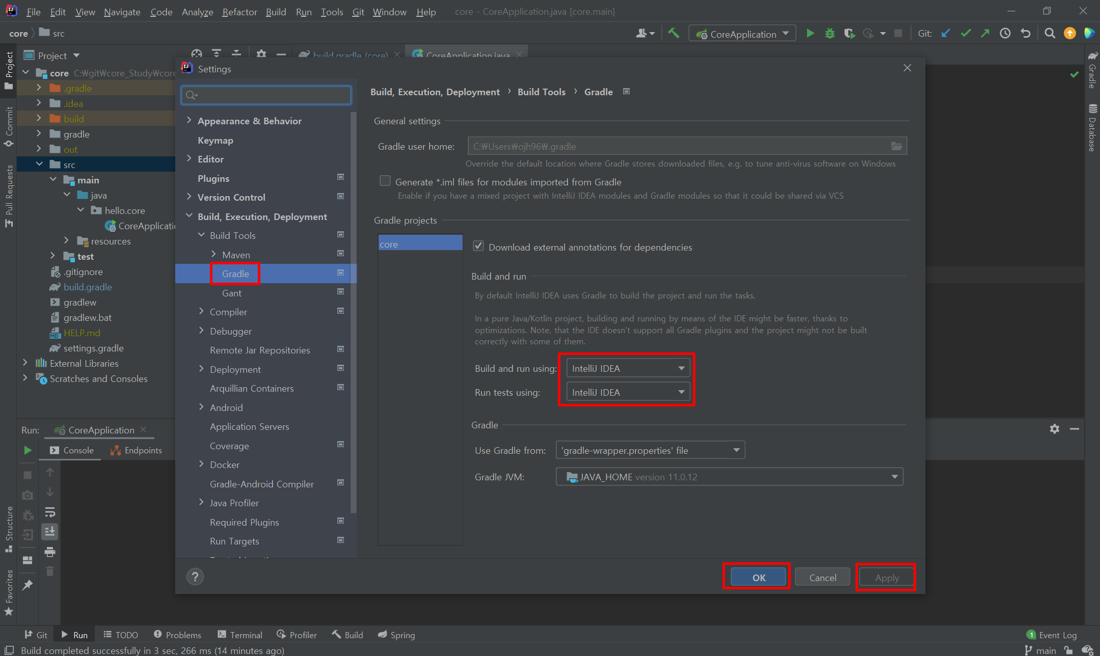 빌드랑 테스트를 인텔리제이로 변경해 줍니다.