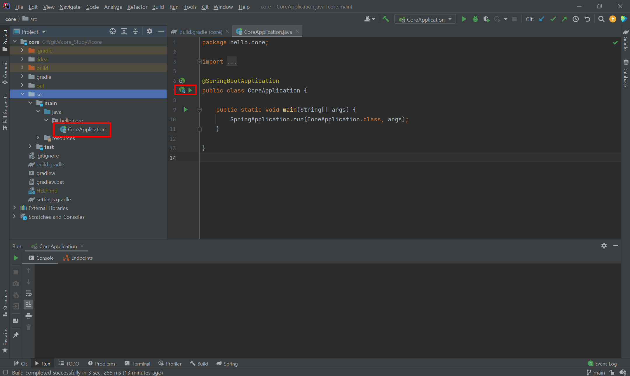 그래들로 실행하면 실행 속도가 느리기 때문에 인텔리제이로 바꿔줍니다.