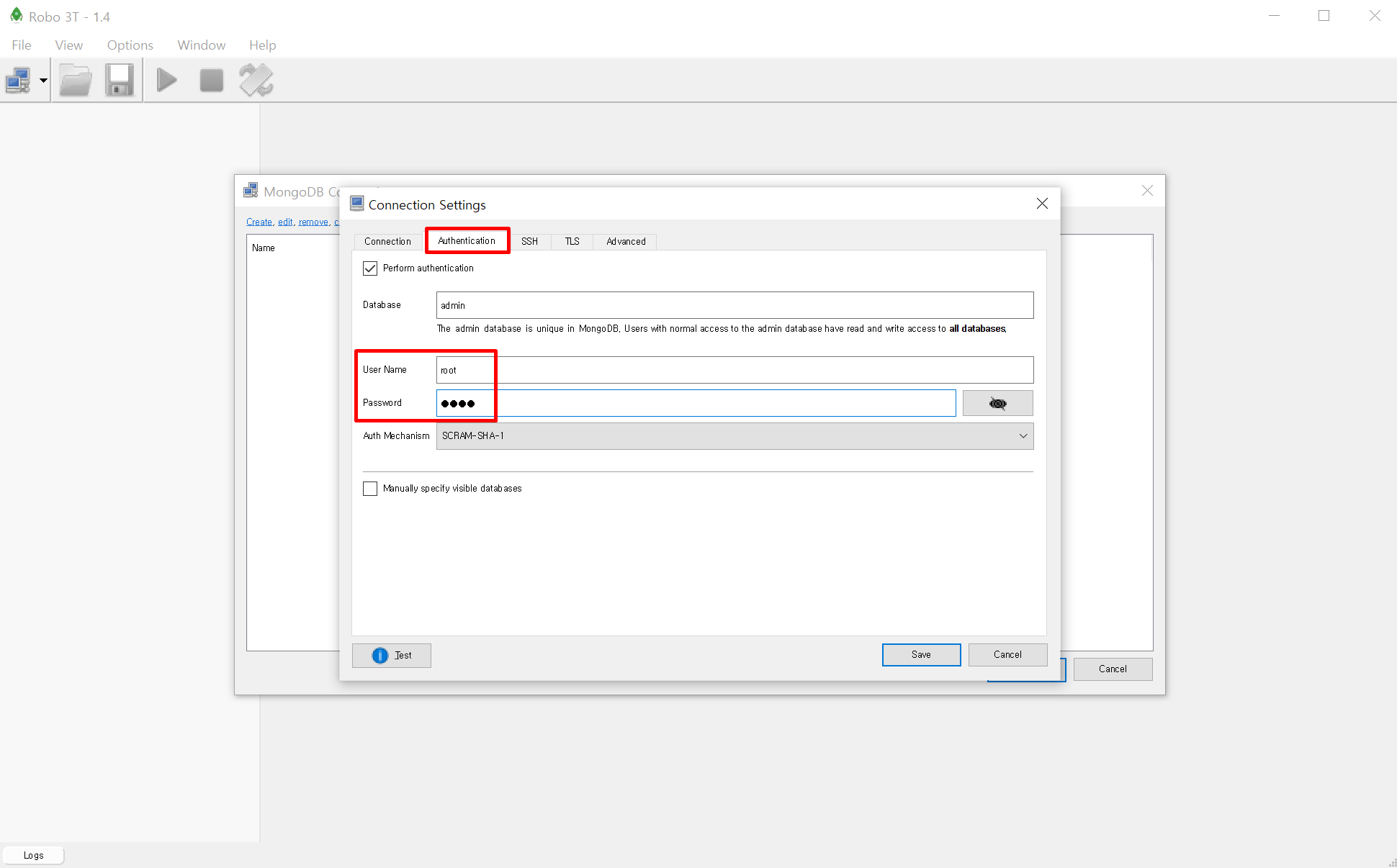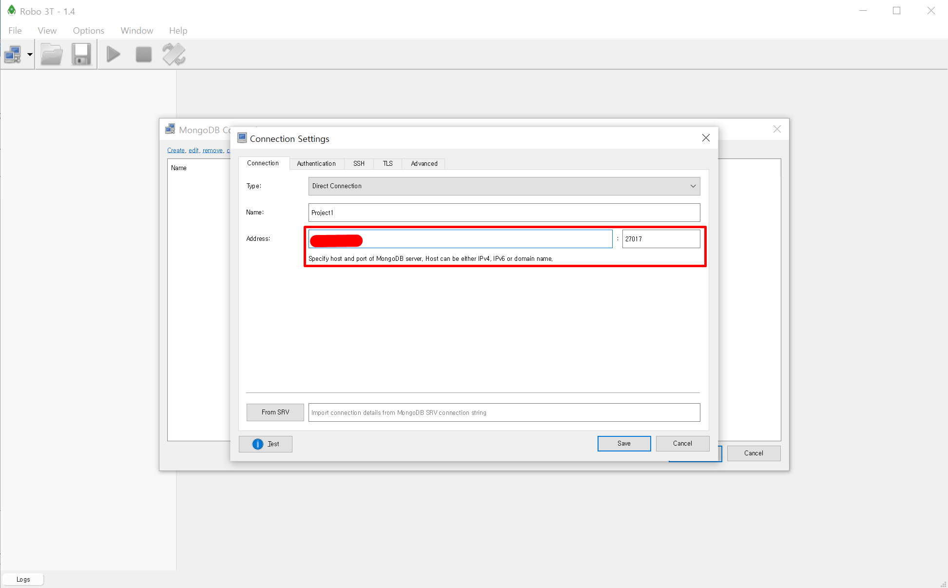 - Robo 3T에 실행하고 Connection Settings을 열어준다.