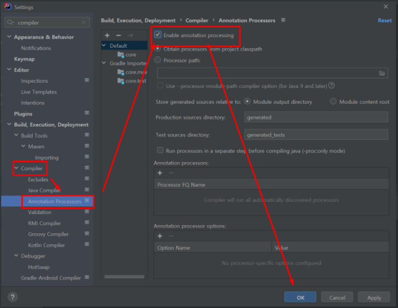 - 컴파일에도 들어가서 설정해줘야 하는 부분을 체크해주고 OK를 눌러주면 끝이난다.