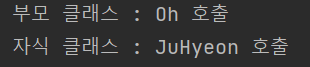 코드 예시와 같이 간단하게 Oh 클래스와 Oh 클래스를 상속 받은 JuHyeon 클래스를 생성했고 각각 생성자를 만들어 줬다.
