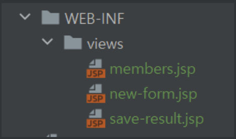 파일 경로를 보면 WEB-INF를 만들고 그 안에 views를 넣었다. WEB-INF 안에 있는 JSP는 밖에서 호출할 수 없다.
