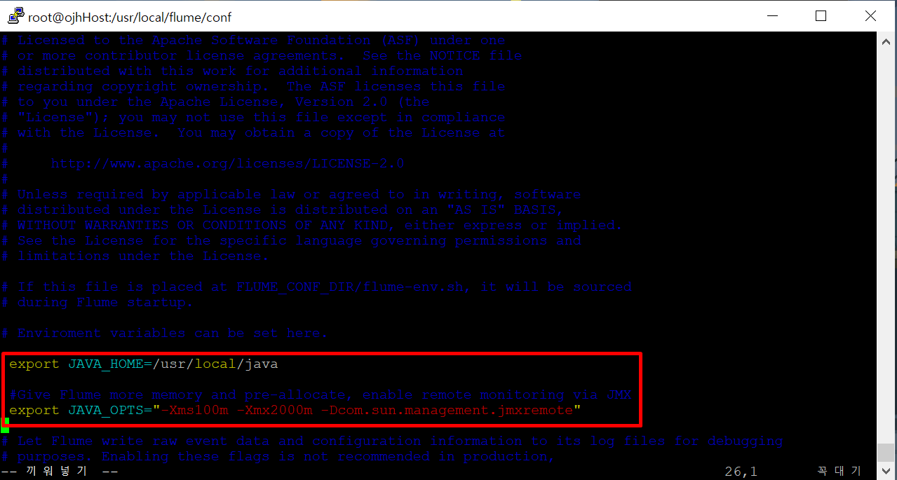 자바 경로를 설정해 주고 주석을 풀어줍니다.
