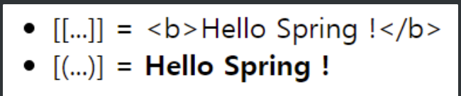 이스케이프를 사용할 때 왜 주의해야 하나면 만약 이처럼 컨트롤러에서 화면 단으로 <b>태그를 포함해서 보내준다. Hello Spring ! 이 이렇게 볼드체로 나타나게 하고 싶은 것이다.