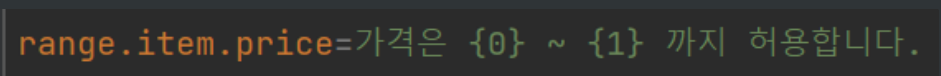 errors.properties에서 확인할 수 있다. 하지만 뒤에 값을 더 적어주고 range.item.price가 매칭되지 않았을 때 다른 메시지를 매칭시킬 수 있다. 예를 들면 기본 오류 메시지를 보여줄 수도 있다.