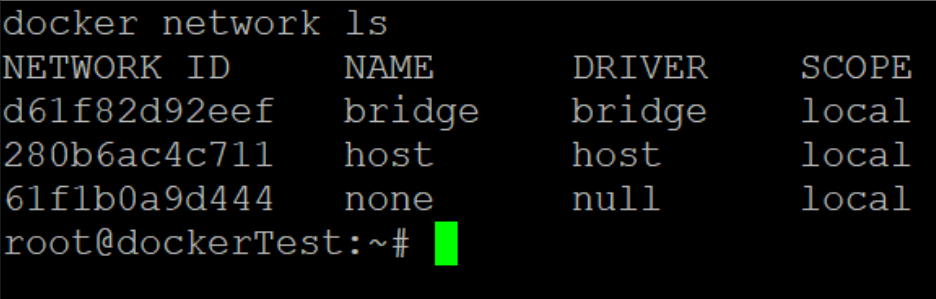 명령어로 기본적으로 사용할 수 있는 네트워크가 무엇인지 확인해 볼 수 있다.