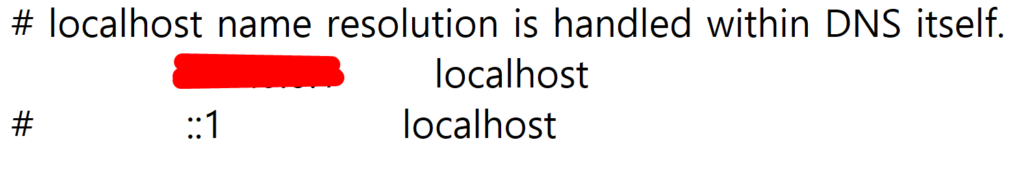C:\Windows\System32\drivers\etc 경로에 host 파일에 주석을 풀어줍니다.