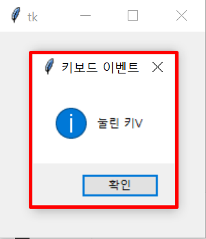 messagebox.showinfo("키보드 이벤트", "눌린 키" +