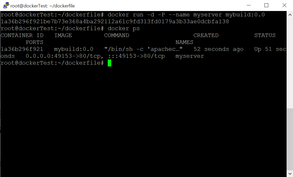 docker run -d -P --name myserver mybuild:0.0