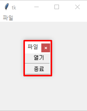 mainMenu.add_cascade(label = "파일", menu = fileMenu)