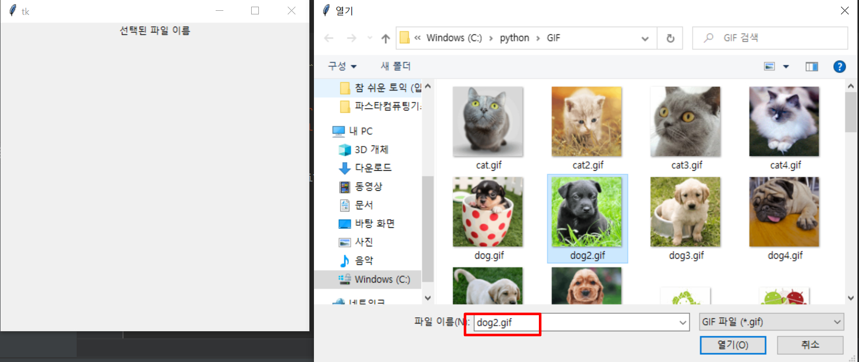 설정해둔 .gif 파일들을 불러올 수 있고 선택을 하고 열기를 눌러줍니다.