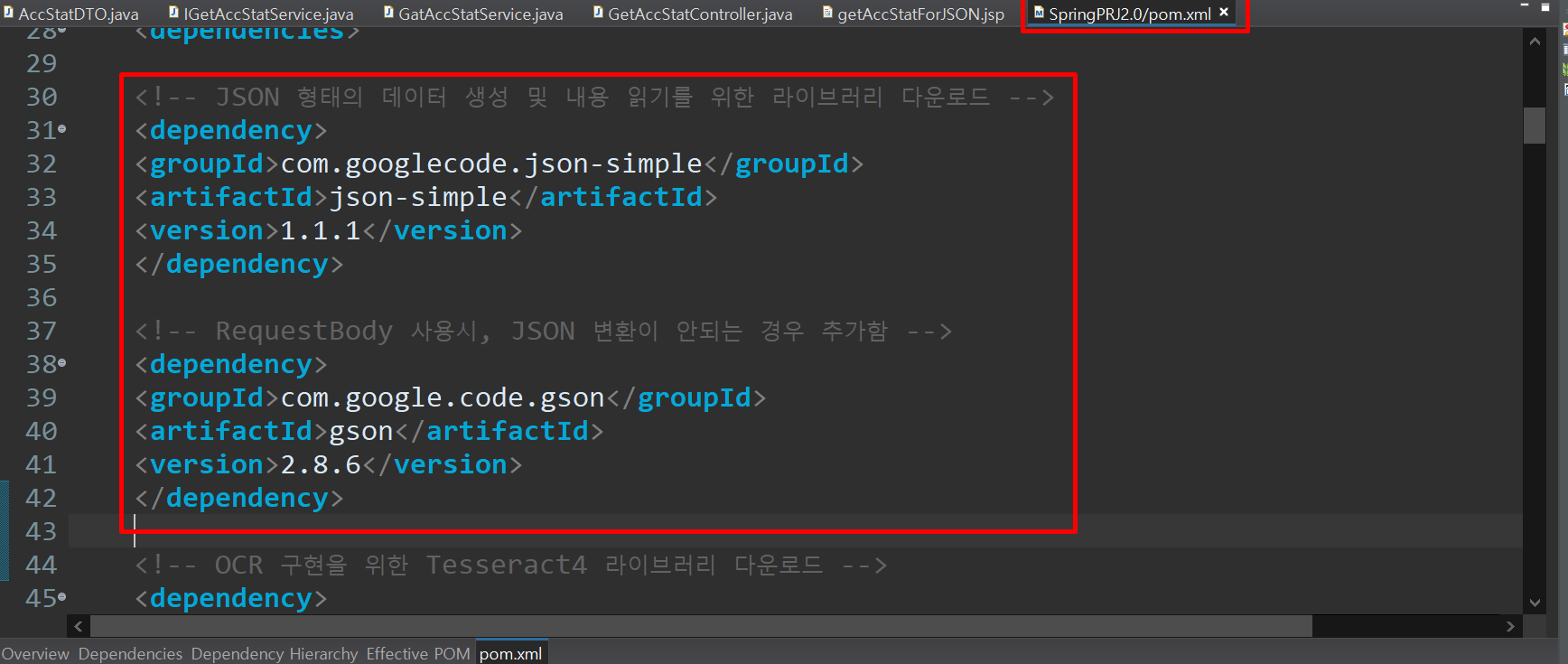 pom.xml에 라이브러리를 추가해 줍니다.