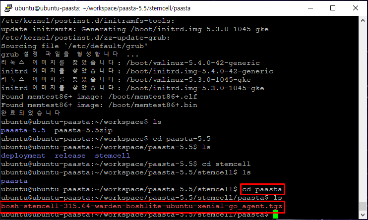 bosh 파일이 있습니다. 안에 ubuntu로 되어있는 부분을 보면 파스타를 배포할 때 우분투로 설치할 수 있는 것을 확인할 수 있습니다.