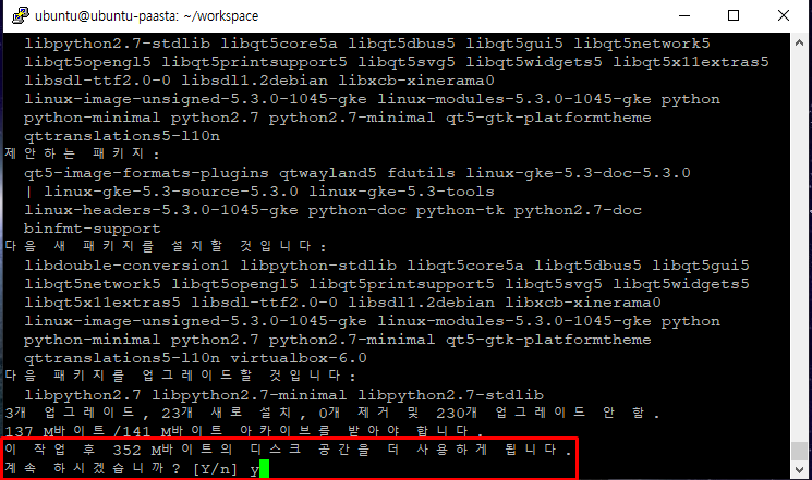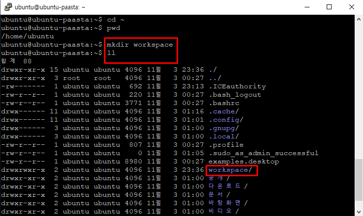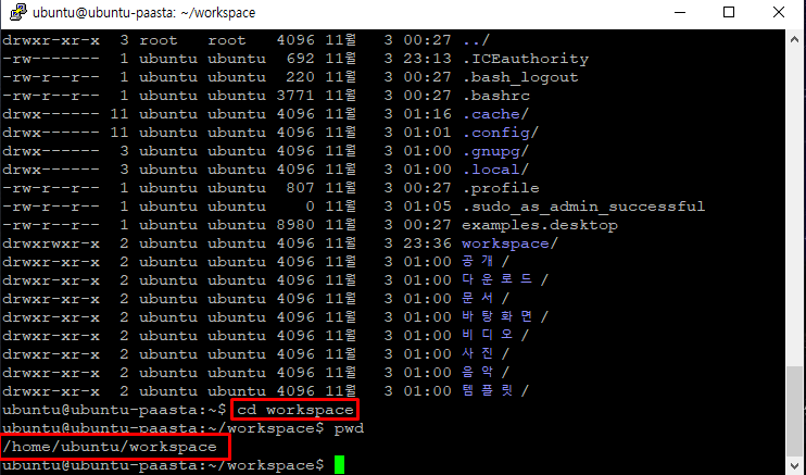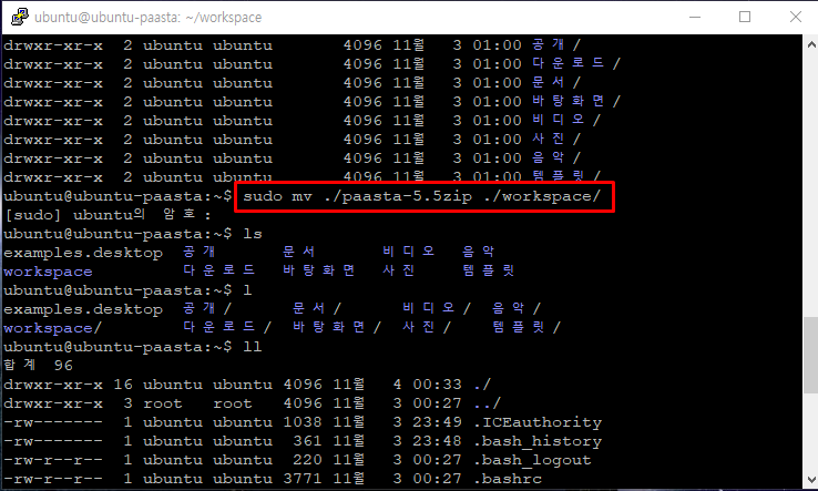workspace 파일에 설치를 해야 하는데 홈에다 설치해서 mv 명령어를 통해 옮겨줬습니다.