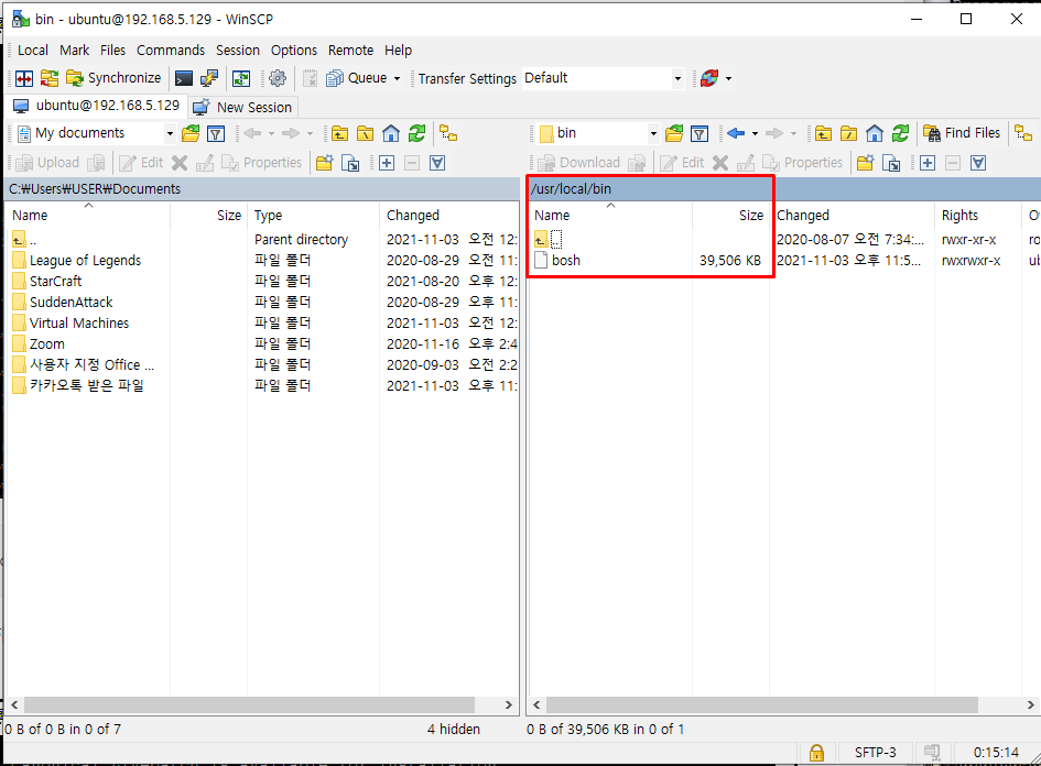 winSCP를 통해 보면 파일이 정상적으로 옮겨진 것을 볼 수 있습니다.