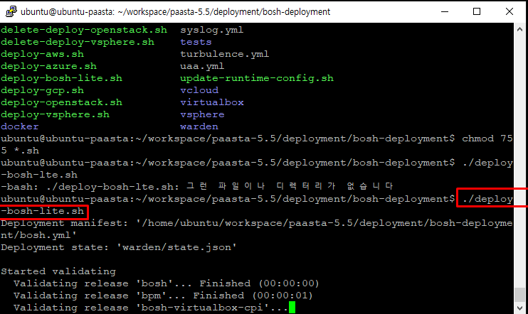 cd /home/ubuntu/workspace/paasta-5.5/deployment/bosh-deployment