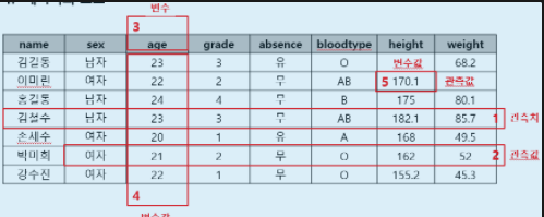 한 개 값을 지칭할 때 기준에 따라 변수값 혹은 관측값이라고 부른다.