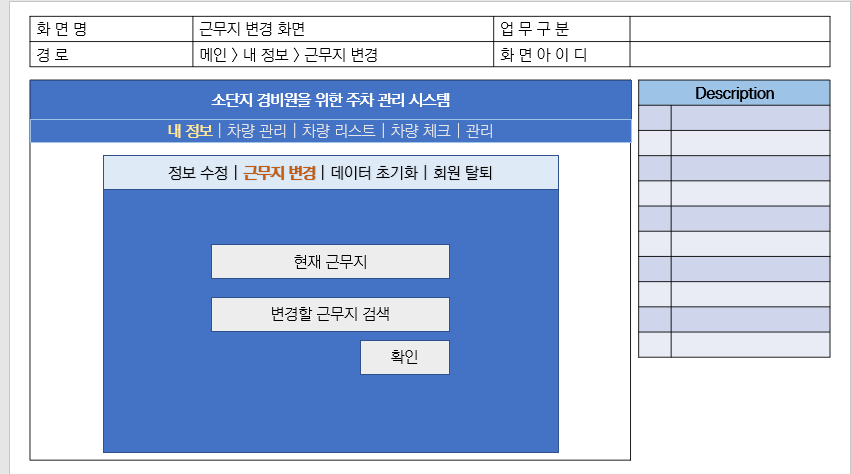 화면 설계서에 디자인은 들어가지 않았다. 레이아웃이라고 해야 하나. 전체적으로 어떻게 어떤 기능을 배치할지에 대해 생각하고 만들고 있다. 딱 이 모양대로 만드는 게 아니라 이런 구조, 이런 배치를 생각중이다. 정도를 전달할 수 있을 것 같다.