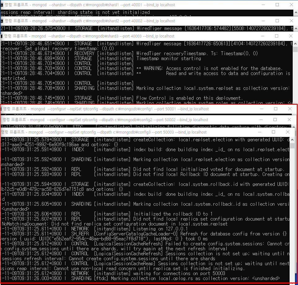 mongod --shardsvr --dbpath c:\mongodb\shard2 --port 40002 --bind_ip localhost