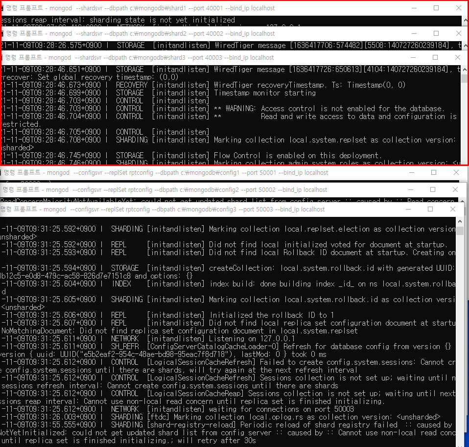 mongod --shardsvr --dbpath c:\mongodb\shard1 --port 40001 --bind_ip localhost