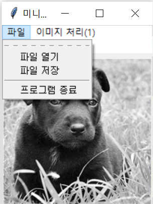 지금 강아지 이미지는 이미지 처리(2) 메뉴의 흑백이미지를 적용해 둔 상태입니다.
