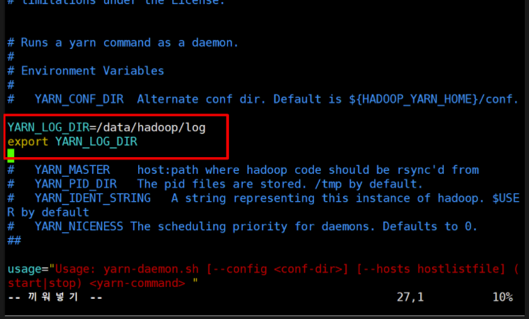 [yarn-daemon.sh]에서 Yarn 로그를 설정한다.