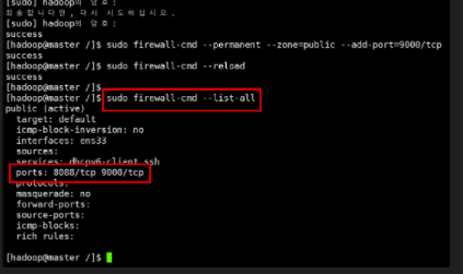 하둡 방화벽 포트 열기 - MasterNode